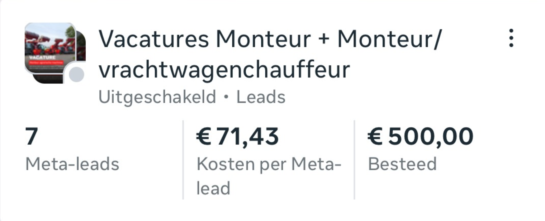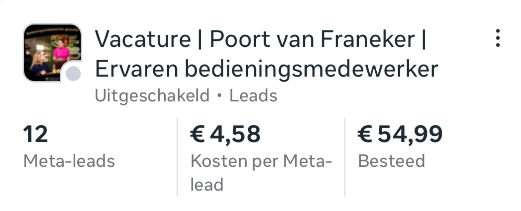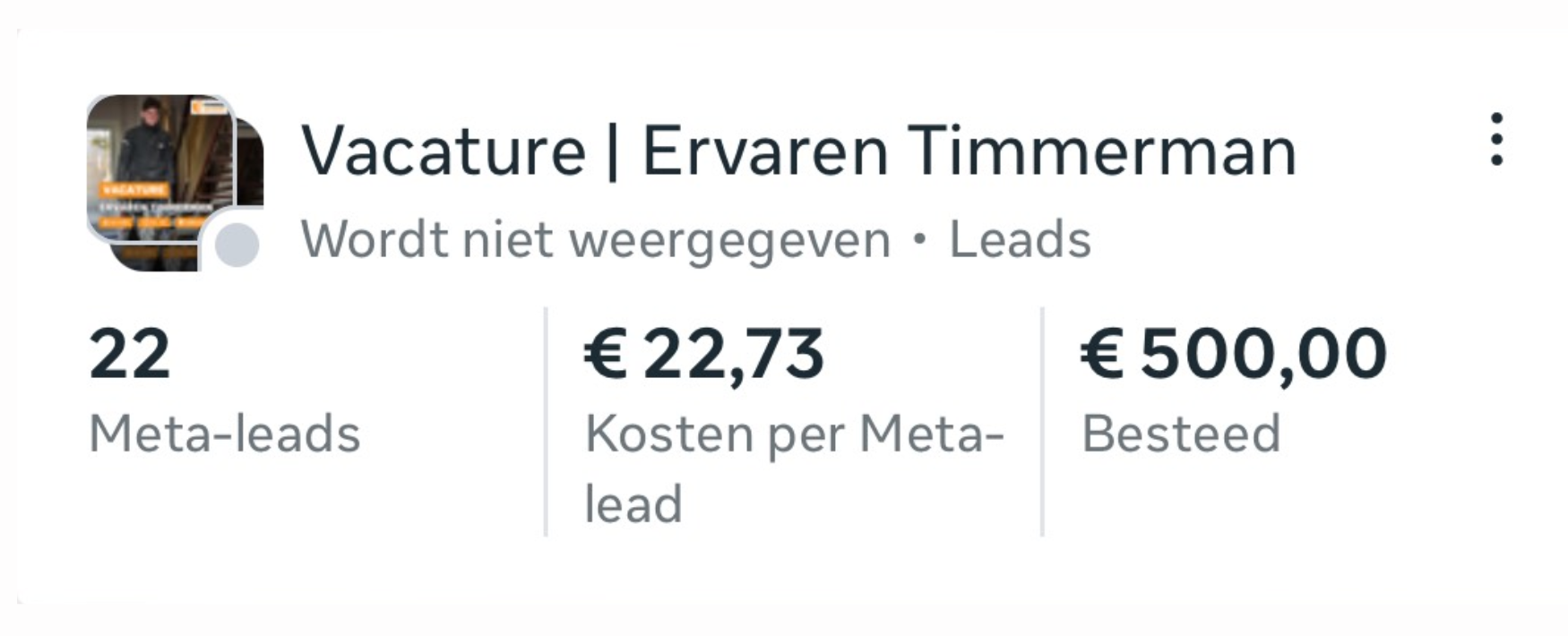 De totale investering voor het vervullen van een vacature ligt tussen €1200 - €2000, 4 tot 8 keer goedkoper dan een traditioneel recruitmentbureau.